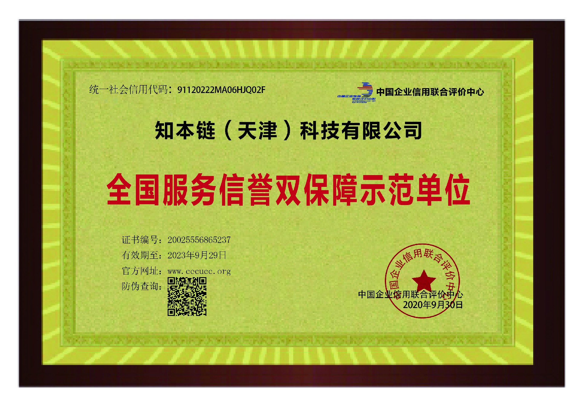 全国服务信誉双保障示范单位